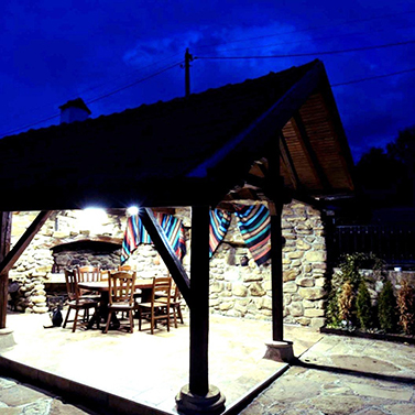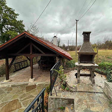 До къщата, под навес е изградено барбекю с пещ и маса за събирания през топлите дни на годината.